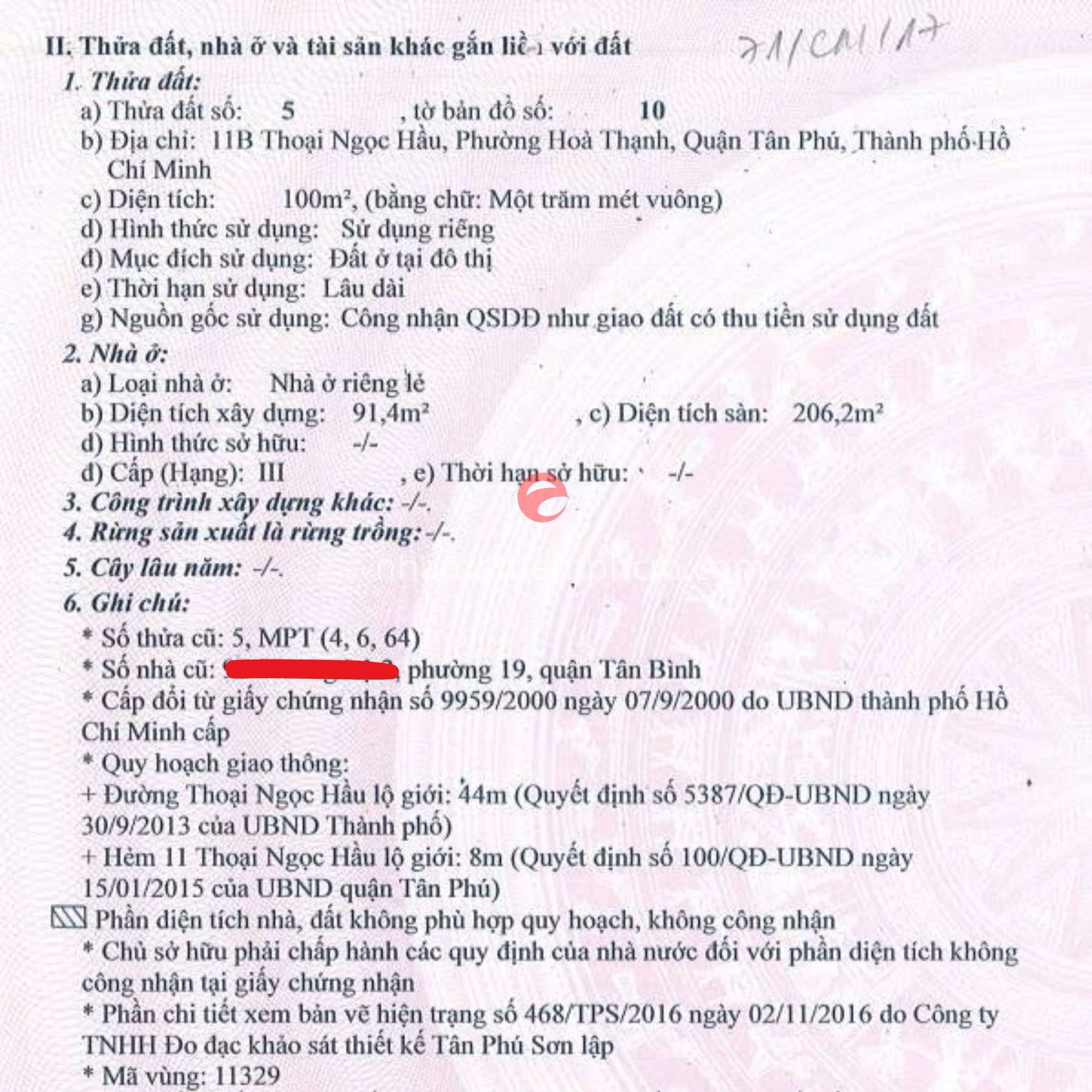 Bán nhà 11B Thoại Ngọc Thầu, Phường Hòa Thạnh Quận Tân Phú vị trí trung tâm khu dân cư sầm uất gần Lũy Bán Bích thuận tiện ở kinh doanh đầu tư lâu dài ổn định