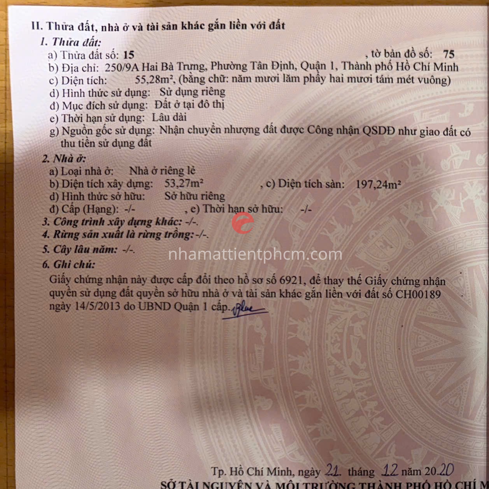 Bán nhà 2 mặt tiền 250/9A Hai Bà Trưng vị trí trung tâm đắc địa thuận tiện kinh doanh đa ngành giá trị khai thác cao pháp lý rõ ràng