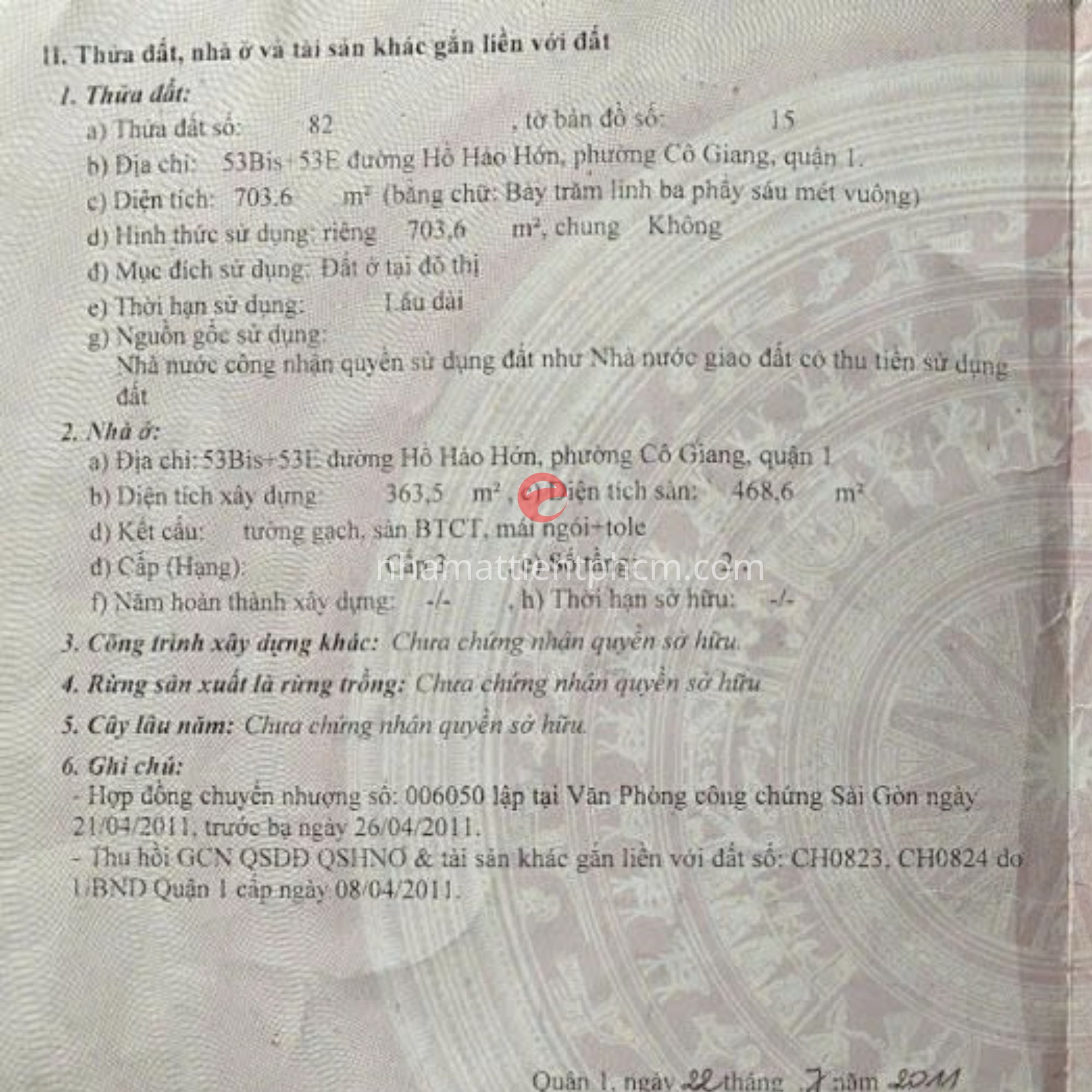 Bán nhà 53bis-53E Hồ Hảo Hớn vị trí trung tâm Quận 1, khu dân cư hiện hữu, pháp lý rõ ràng, tiềm năng xây dựng cao, phù hợp đầu tư hoặc an cư lâu dài.