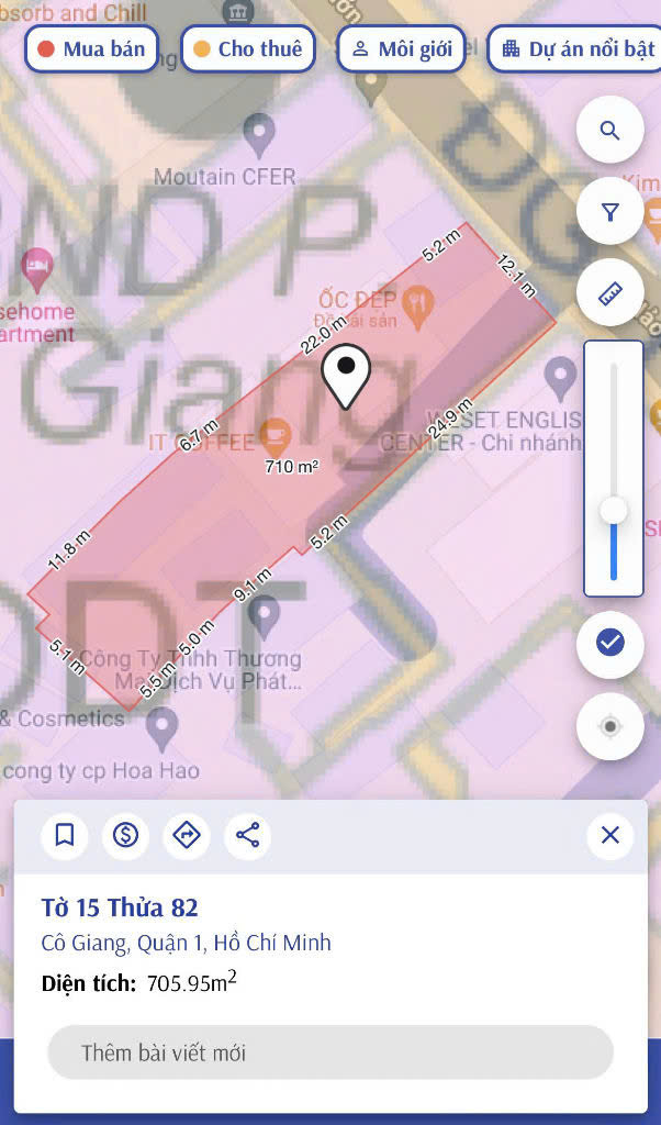 Tọa lạc tại trung tâm Quận 1 – tuyến đường Hồ Hảo Hớn sầm uất, ngay khu vực Phường Cô Giang, lô đất rộng 703,6m² (13m x 50m) hiện đang có nhà cấp 4, là một trong những cơ hội hiếm có để sở hữu quỹ đất lớn giữa “trái tim” của thành phố. Với chỉ tiêu xây dựng 2 tầng hầm và 10 tầng, lô đất này mở ra tiềm năng đầu tư tối ưu — từ xây dựng toà nhà văn phòng, khách sạn cao cấp, căn hộ dịch vụ đến shophouse thương mại… phù hợp cho các nhà đầu tư, doanh nghiệp hay khách hàng có nhu cầu sử dụng thực.