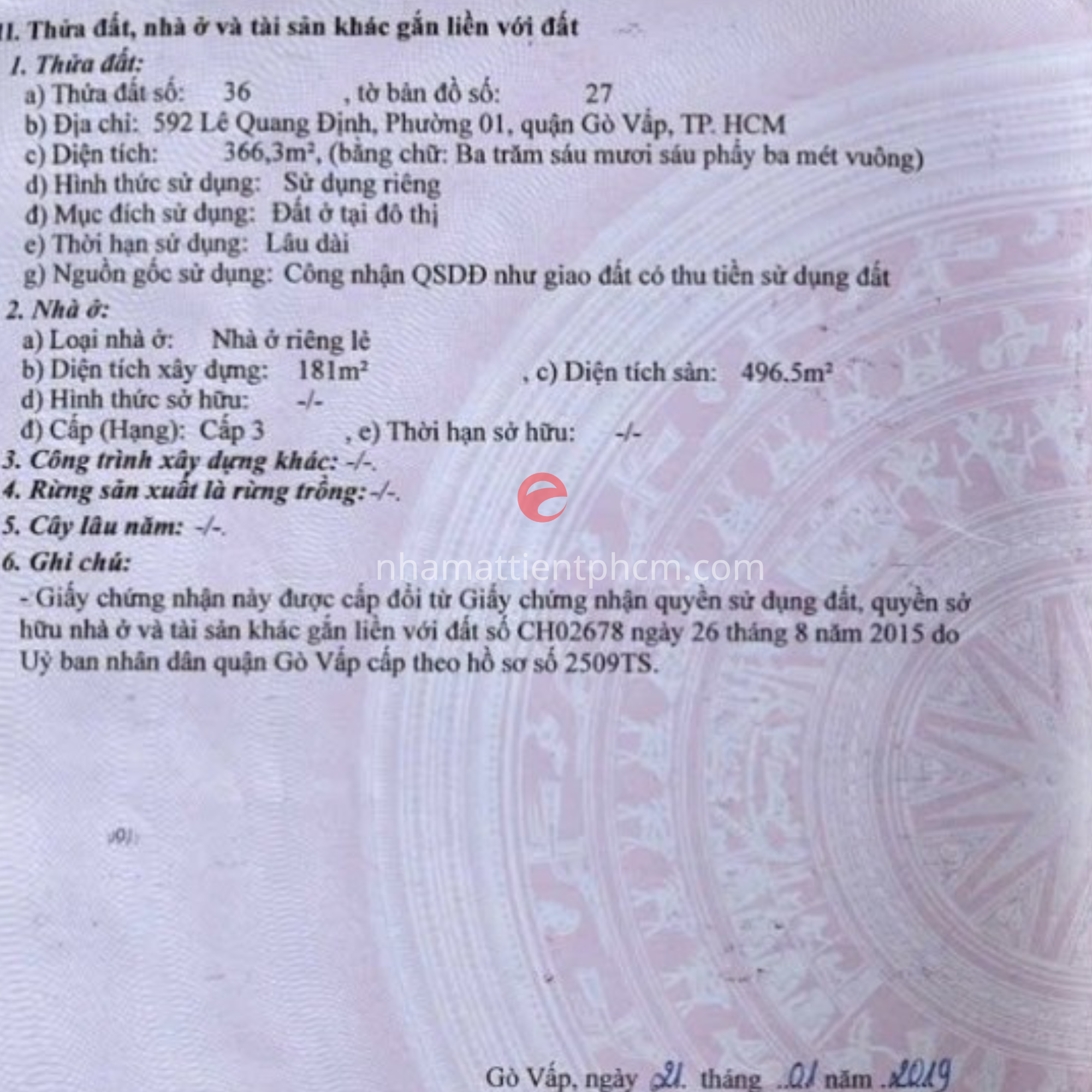 Bán nhà 592-594 Lê Quang Định, Phường 1, Quận Gò Vấp, Tp. HCM